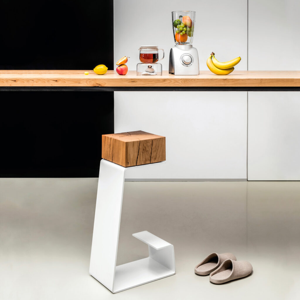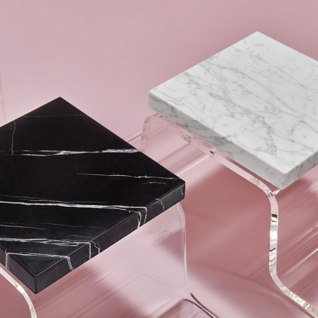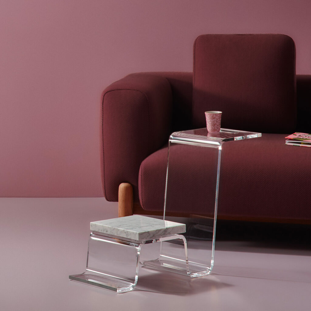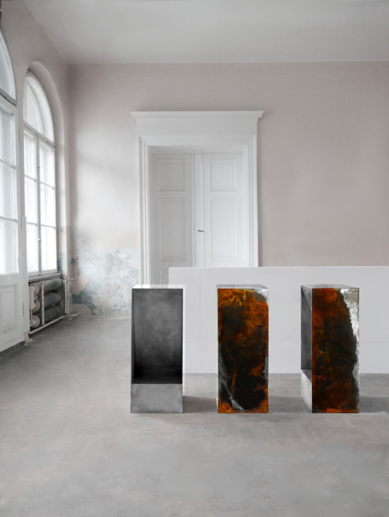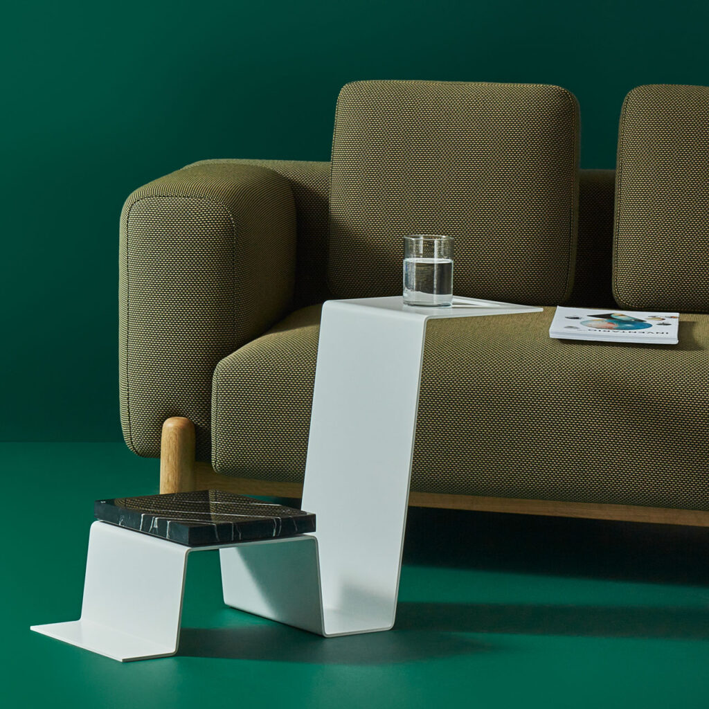 Poprzez surowość materiału oraz linie na jego powierzchni, będące śladami po gięciu stali, projektanci chcą przekazać prostotę procesu tworzenia. Otrzymujemy funkcjonalne platformy, które dzięki swojej minimalistycznej formie podtrzymują rzeźbiarski charakter kolekcji.