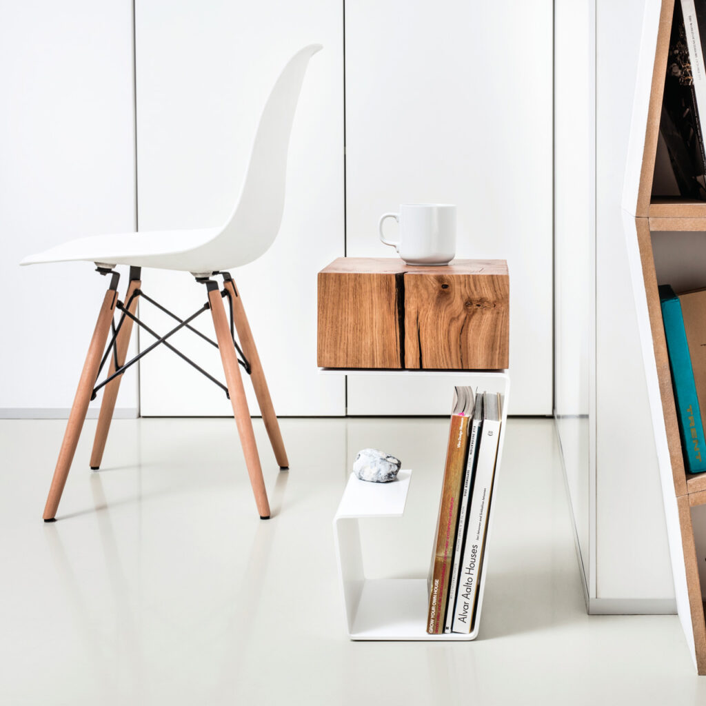 Minimalizm formy, prostota procesu, ponadczasowość designu to znaki szczególne kolekcji. Czyste linie, złożone w geometryczne, funkcjonalne kształty łączą się z naturalnymi, nienaruszonymi materiałami. THE LINE składa się z czterech unikatowych obiektów, THE LINE Side Table, THE LINE Coffee Table, THE LINE Bar Stool oraz THE LINE Foot Stool. Razem tworzą geometryczną instalację artystyczną, stworzoną ze stali i drewna.