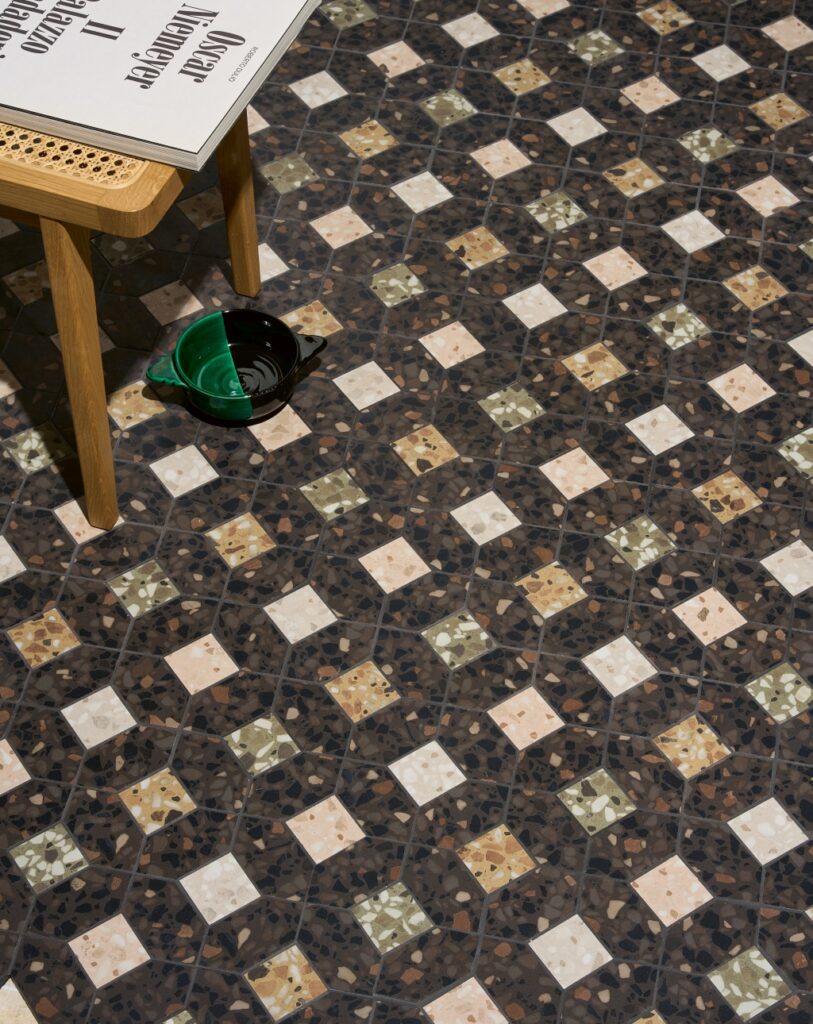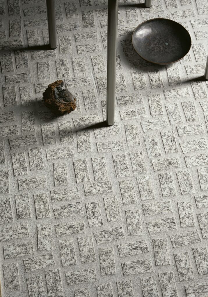 Brutus nasce dall’incontro tra l’estetica brutalista europea e le atmosfere sudamericane. La collezione propone un effetto granito in due finiture, Natural e Rugged, da accostare a un raffinato effetto marmo Guatemala e a un piccolo formato argentato lucido, Cromo. L’equilibrio tra superfici grezze e dettagli preziosi, tra opacità e luminosità, dà vita a spazi dal forte impatto sensoriale.