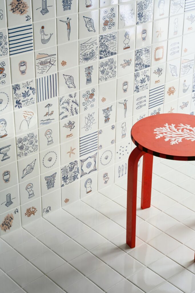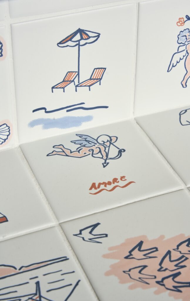 Stories è una collezione poetica e narrativa in formato 10×10, dove ogni piastrella è un tassello che compone mondi diversi. Le quattro varianti: Dance, Eddie, Caravan e Costiera, condividono una base bianca, opaca o lucida, e permettono composizioni personalizzate. Ogni progetto diventa così un racconto unico, fatto di forme, colori e atmosfere.