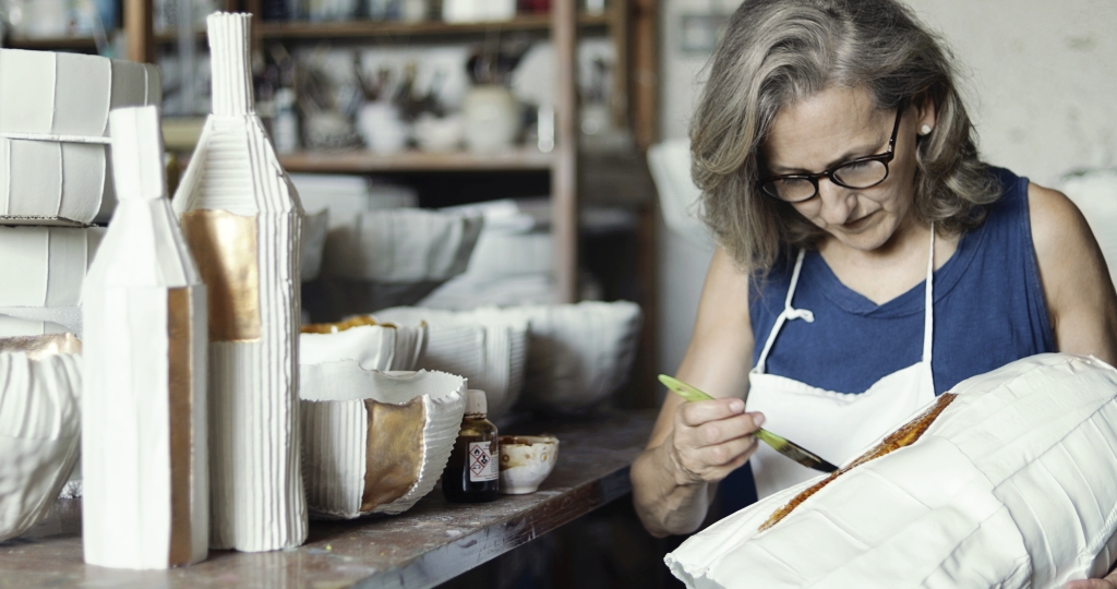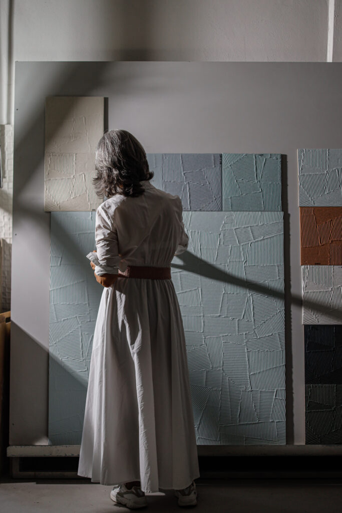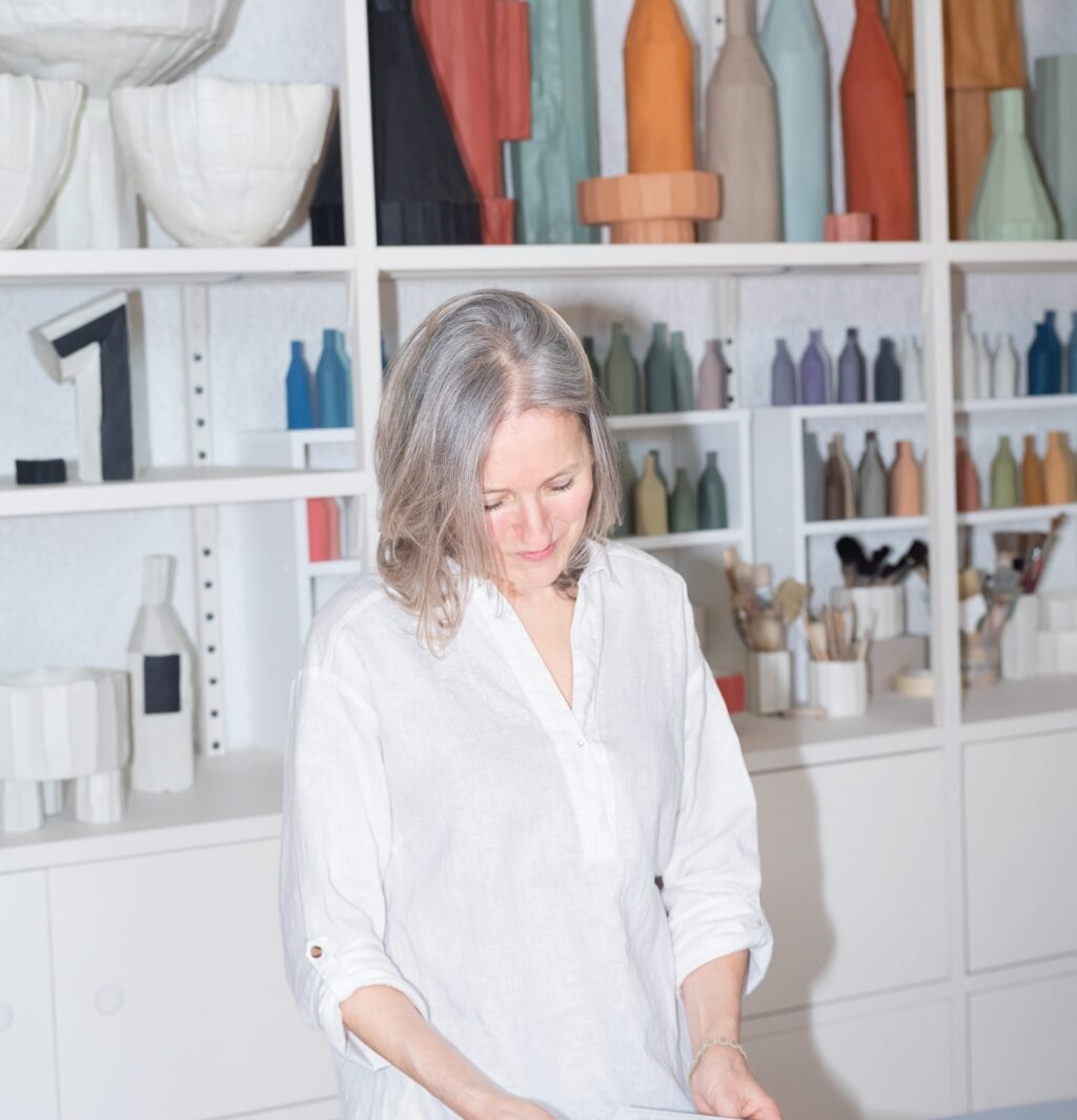 Paola Paronetto applica la tecnica del paper clay creando forme leggere, porose ma al tempo stesso resistenti. Nella collezione Homey Paper Clay, questa metodologia trasporta la sua sensibilità poetica sulle superfici ceramiche, ottenendo texture uniche e una sensazione di leggerezza che conferisce armonia e calma agli spazi.