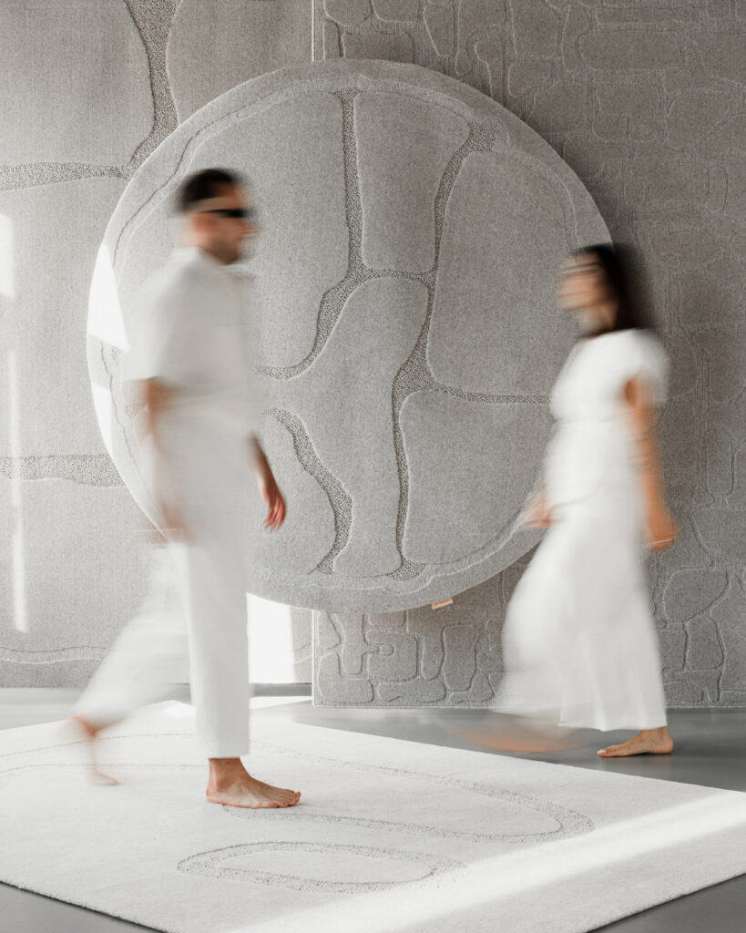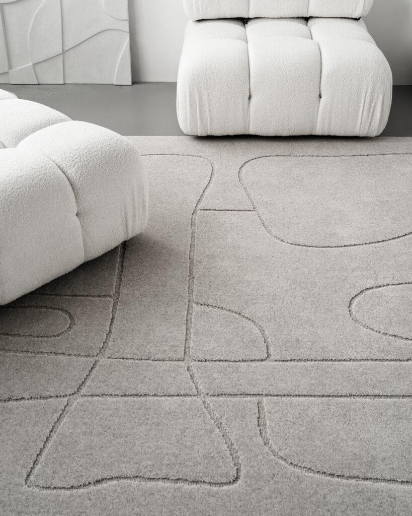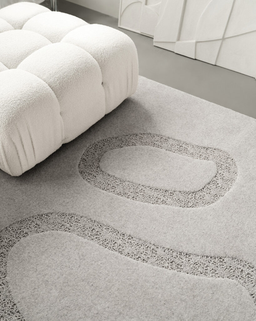 Seria dywanów z ponadczasowymi wzorami w monochromatycznym wykończeniu wykonana jest ze 100% niebarwionej wełny brytyjskiej, co podkreśla jej autentyczność i bliskość z naturą. Dywany dostępne są w dwóch odcieniach – naturalnym szarym i ciemnym szarym, niezmienionych od chwili strzyżenia wełny.