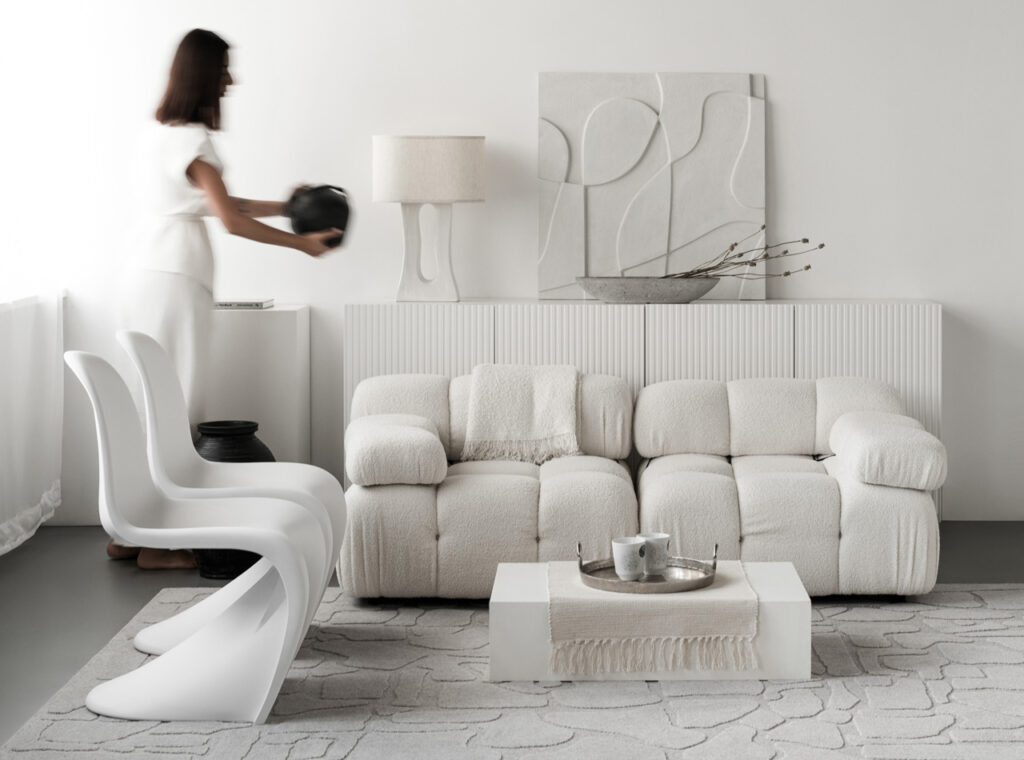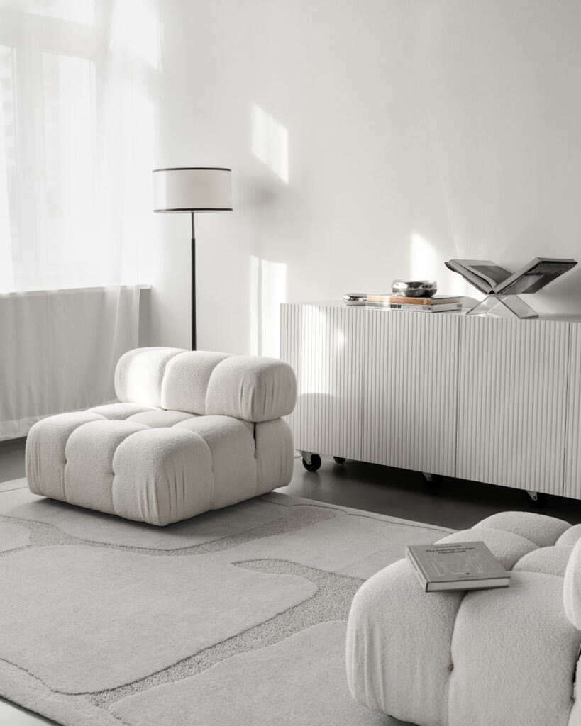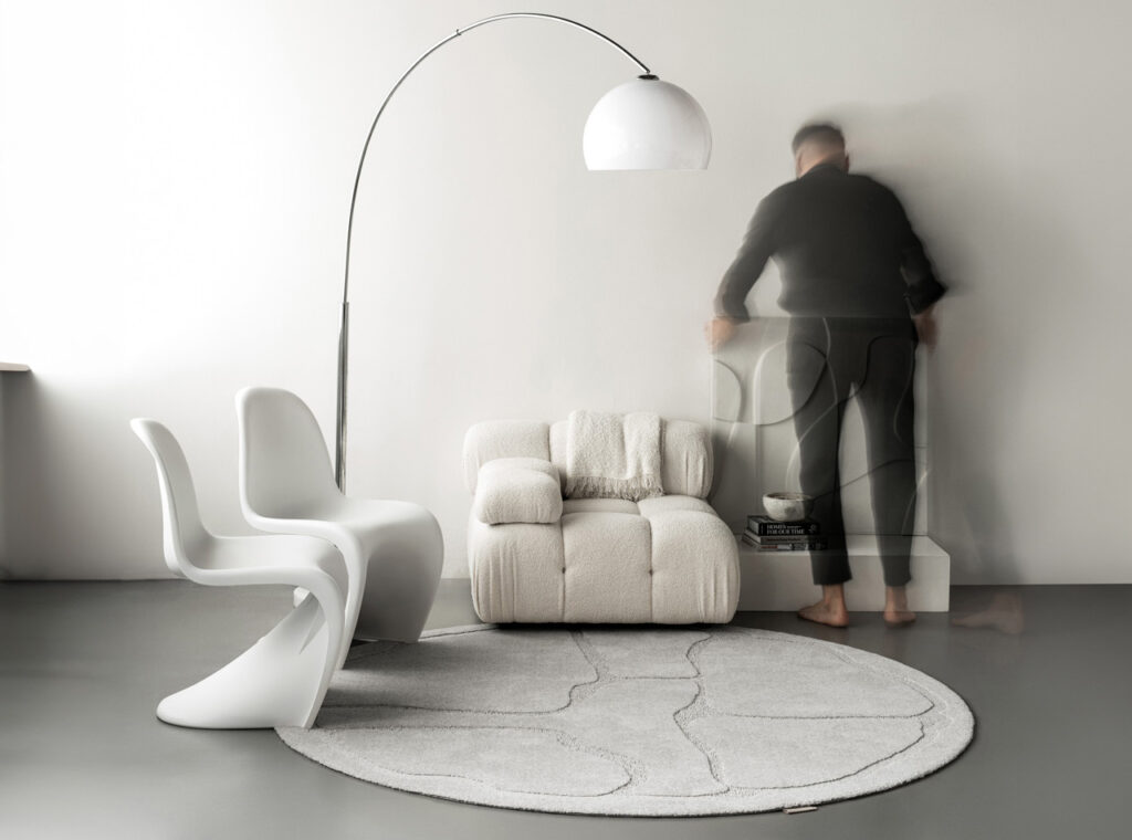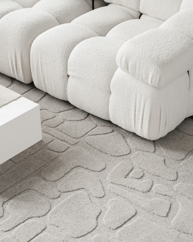 Monochromatyczna paleta kolorów doskonale wpasowuje się w minimalistyczną estetykę LADNINI, stawiając na pierwszym miejscu subtelność i wyrafinowaną prostotę. Charakterystyczną cechą kolekcji Morphic jest zróżnicowana struktura dywanów, która nadaje im trójwymiarowy efekt. Dzięki umiejętnemu połączeniu runa i pętli, wzory na dywanach ożywają w zależności od kąta padania światła, tworząc grę cieni i blasku.